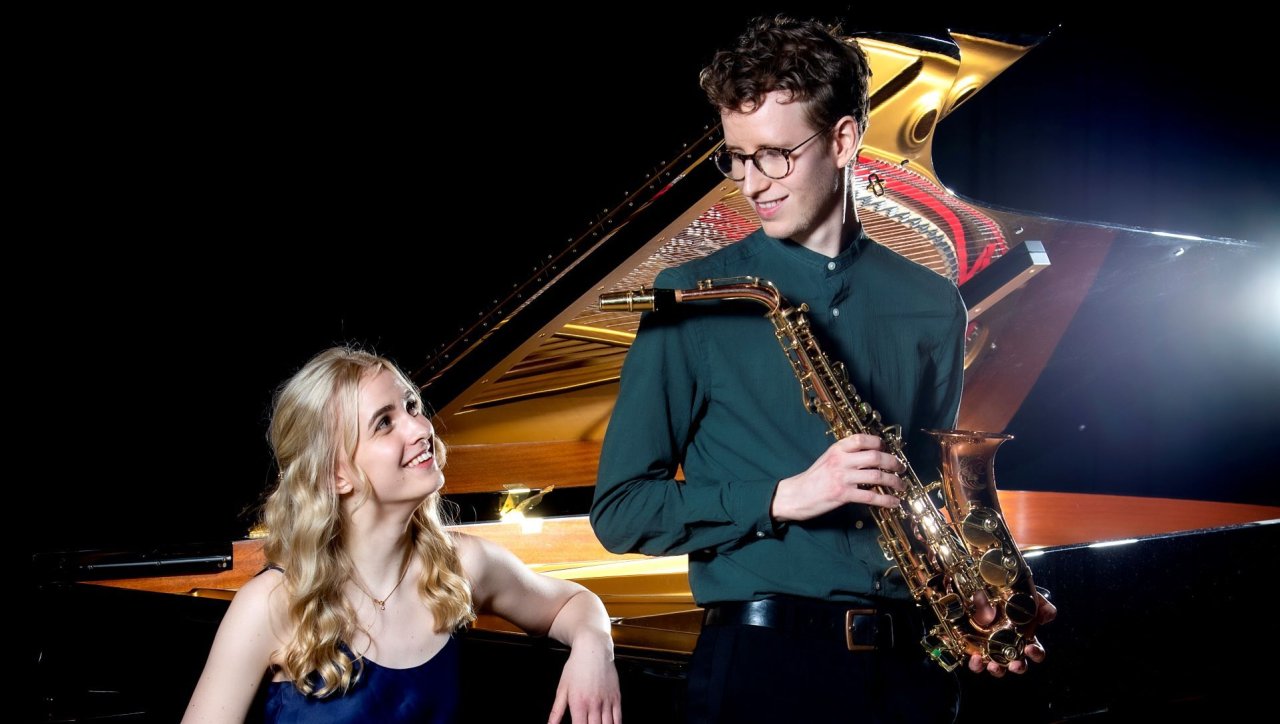 Julia Isaksson, piano, och Theo Hillborg, saxofon. Duo Julia & Theo startade 2017 och har redan skapat en stor repertoar och har framträtt både i Storbritannien och i Sverige. Duon blandar ofta genrer som folkmusik, jazz, klassisk och modern musik.